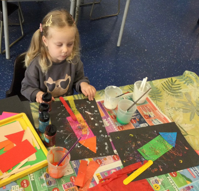 In our mathematics lessons we have been learning about the number 3 and the 2D shape, triangle. We counted the sides and corners of a triangle and then used our design and technology skills to make our own triangles from lolly sticks and pipe cleaners.