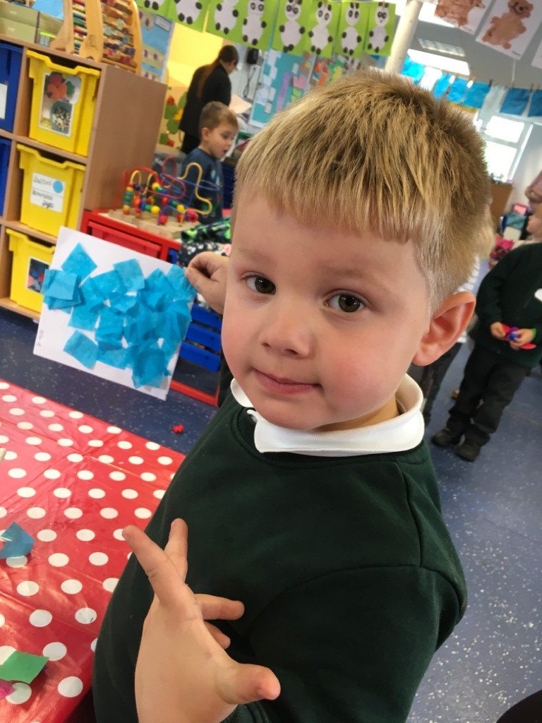 Alongside this; the children have had opportunities to meet and play with some of their new friends, both inside and outside in our lovely nursery garden. We explored a variety of free flow learning opportunities; covering maths, literacy, colour sorting, sensory play, exploring letters and using expressive art and design to create our own collages. As a group, the children came together for both singing and storytelling.