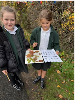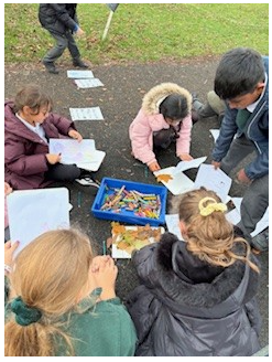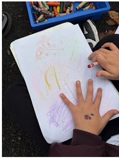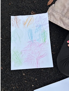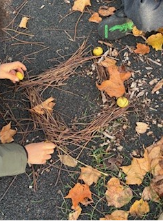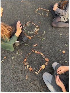 We also looked for rocks and sorted them according to different criteria such as size, colour, texture, man-made or natural. We went on a leaf hunt, identifying different leaves and then we did some leaf rubbings with crayons. Our final activity was to use fallen twigs and leaves to create outdoor art.