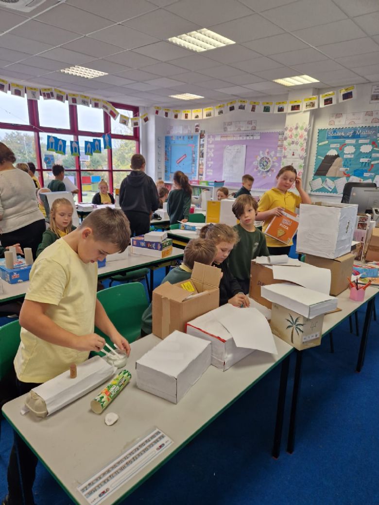 In D&T, we started making our Roman villas! We began by choosing the size of our boxes and wrapping them in white paper. Next week, we’ll continue adding lots of detail to our villas, including mosaics, swimming pools, and marble pillars.