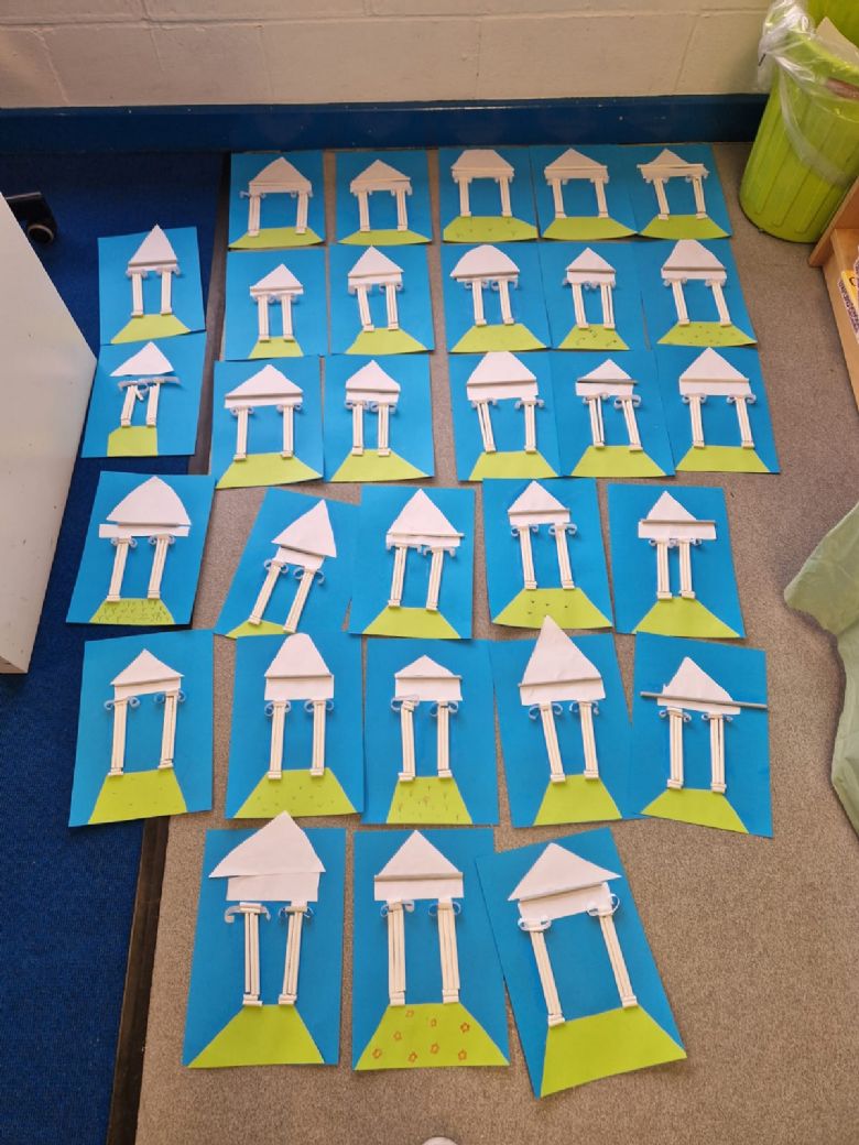 In History, we have been learning all about the Greek columns and then in our Art lesson this week we created our own pictures of Greek columns using a variety of different materials.