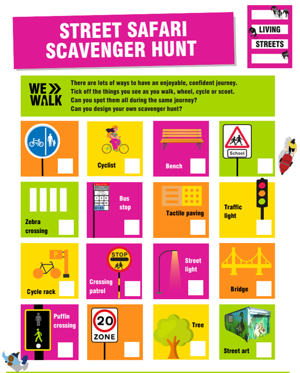 On your next walk to school, see if you can complete this scavenger hunt.