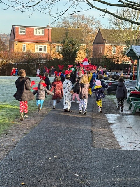 Year 2 had lots of fun taking part in the Sponsored Rudolph Run! We wore our antlers and ran, walked and jogged together to help raise money for St Clare Hospice. Everyone tried their best and cheered each other on. It was exciting to know that by joining in we were helping people who need care and support. We felt proud to be little reindeers making a big difference!