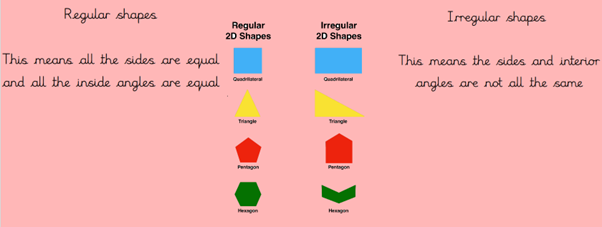 This week in Maths, we have been learning all about shapes! We looked at lots of 2D and 3D shapes and talked about what makes them special. We counted the sides and vertices on 2D shapes like squares, triangles, rectangles, pentagons, hexagons and octagons. Then we sorted the shapes into groups according to the number of sides that they have. We also learnt about the words regular and irregular.