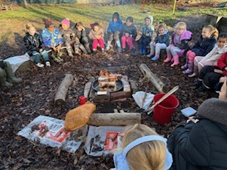 At Forest School this week, we learnt all about fire safety and what is needed to make a fire. We talked about the three important things a fire needs: heat, fuel, and air. We discussed how to stay safe around a fire, such as keeping a safe distance, never running near flames, and listening carefully to instructions. After learning these important rules, we enjoyed a special treat of toasting marshmallows over the fire! Everyone loved watching the marshmallows turn golden and gooey while remembering how important it is to be careful and respectful around fire.