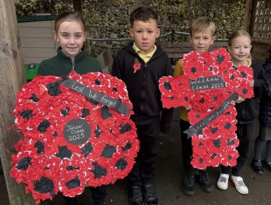 Today, Year 2 took part in a very special act of remembrance. They carefully laid the poppy wreath they had made together and joined the whole school in a two-minute silence. This was a time for us to show respect and think about all the brave people who have fought and died for our country in different wars. The children were calm and thoughtful, and we talked about why it is important to remember their courage and sacrifice.