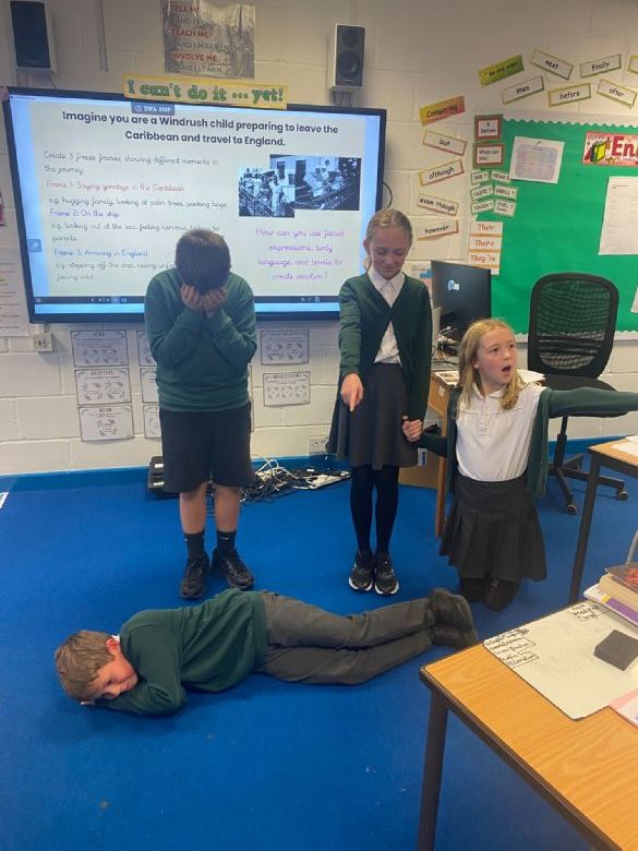In English this week, we continued our work on The Windrush by planning and writing our poems. We used John Agard's The Windrush Child as our inspiration and the poems produced are truly wonderful: full of powerful emotions. They will make a fantastic display...watch out! We also created some freeze frames, putting ourselves into the shoes of the Caribbean people on HMT Empire Windrush. We were in groups as either leaving the Caribbean, on The Windrush or arriving in Great Britain.
