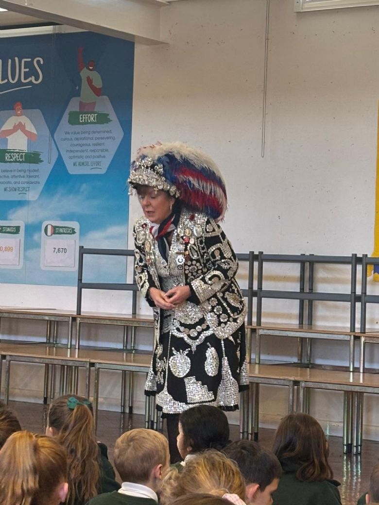 On Wednesday, Pearly Queen Teresa came to deliver an Assembly. She gave us a wonderful history lesson on the Pearly Kings and Queens - more on that later - but the reason for her visit was for her toy appeal. She is collecting toys for Christmas for any children who might not get presents, even though they are on the good list. She spoke about kindness and how we can all do a kind act by bringing a new toy in.