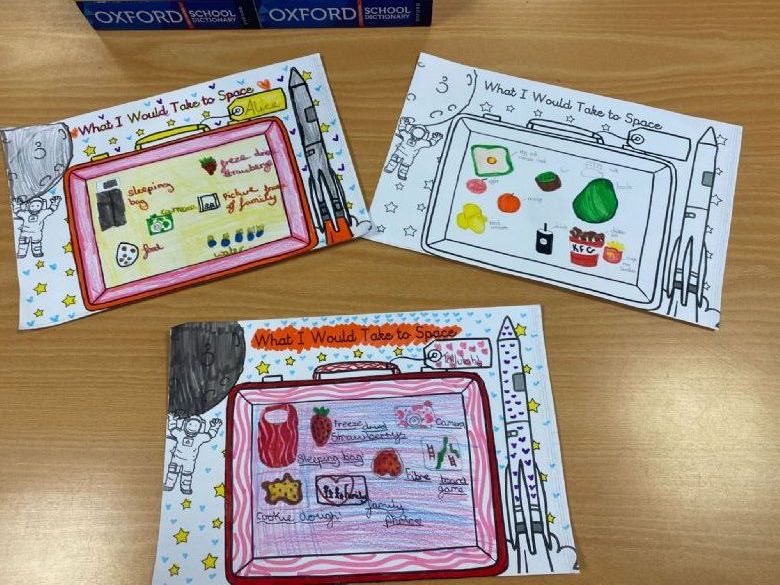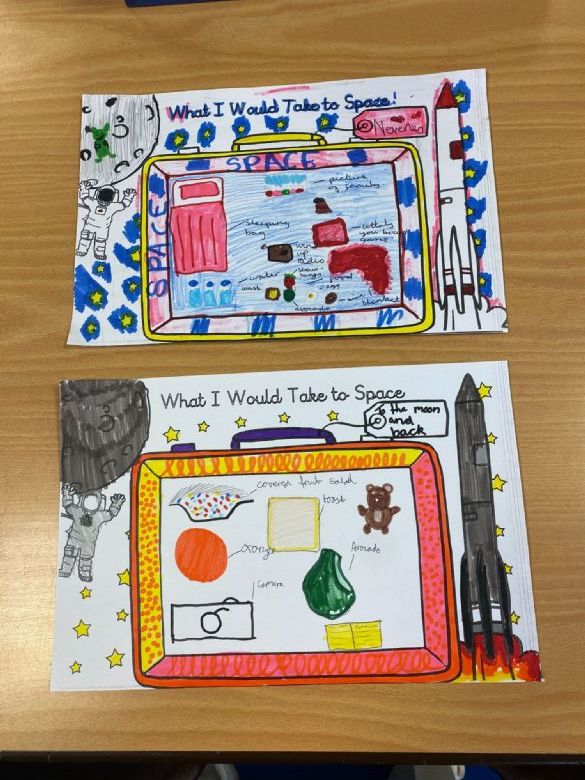 Science took a turn this week once we realised it was World Space Week! We had a live lesson about living in space and heard from real astronauts, including Tim Peake! We then had fun thinking about what we would take to space and we filled our suitcases (producing fabulous posters!) - see bleow.