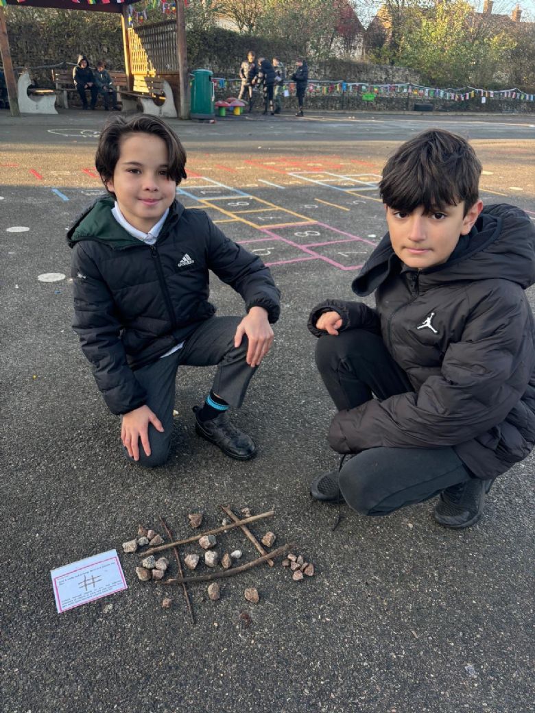 Thanks to the mild (and unseasonal weather!), we had a fabulous Outdoor Learning Day on Thursday. Lots of Maths and English games outside, even in some rain, but that did not stop us. Lots of fun was had by all and we'd love another opportunity to have a day like this again.