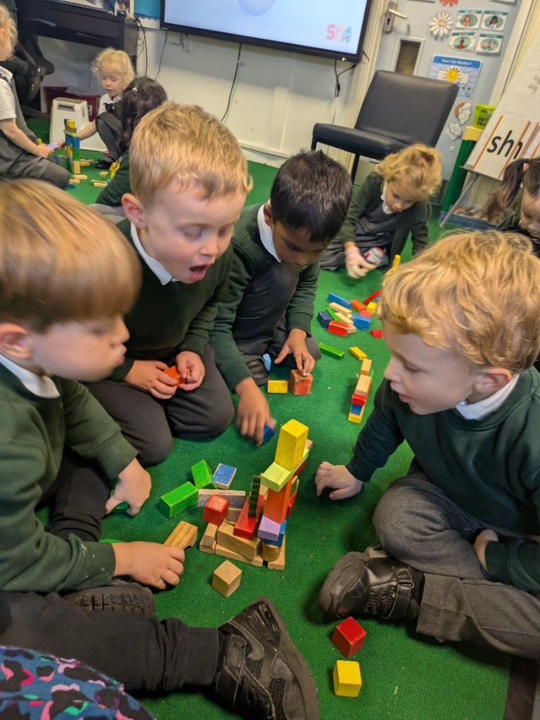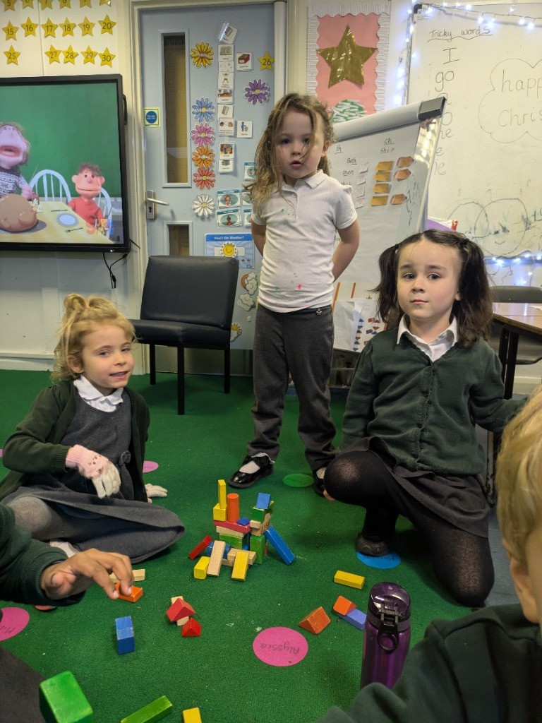 During our daily maths lessons, the children have explored and used their positional language 'on-top, next to, behind, under and inside.' The children have also explored the composition of the numbers 4 and 5.