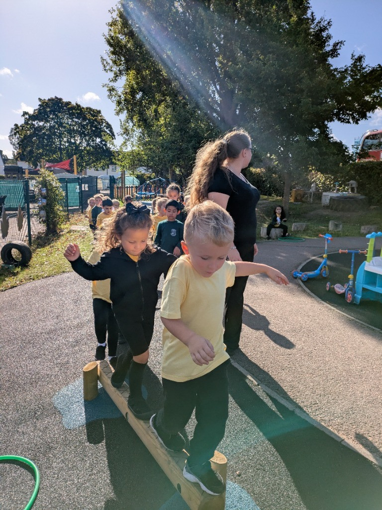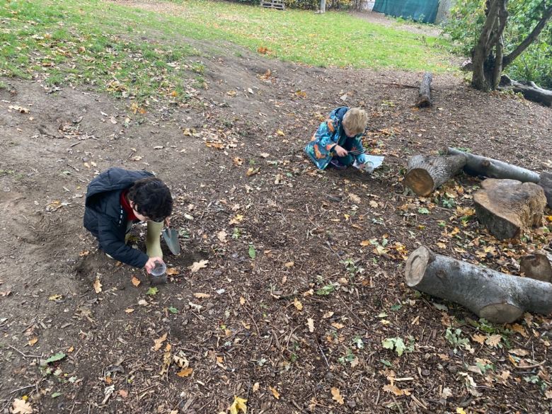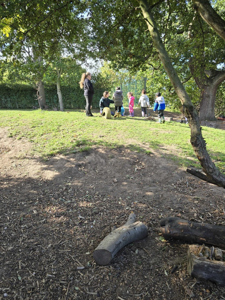 In our forest school session, the children loved exploring the grounds! They had a great time playing in all the wonderful areas created by the older children for OPAL play, such as the mud kitchen and the climbing zone.