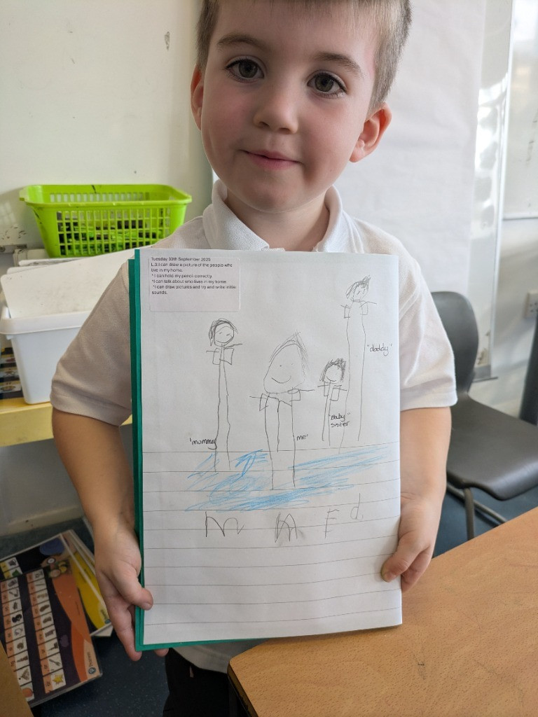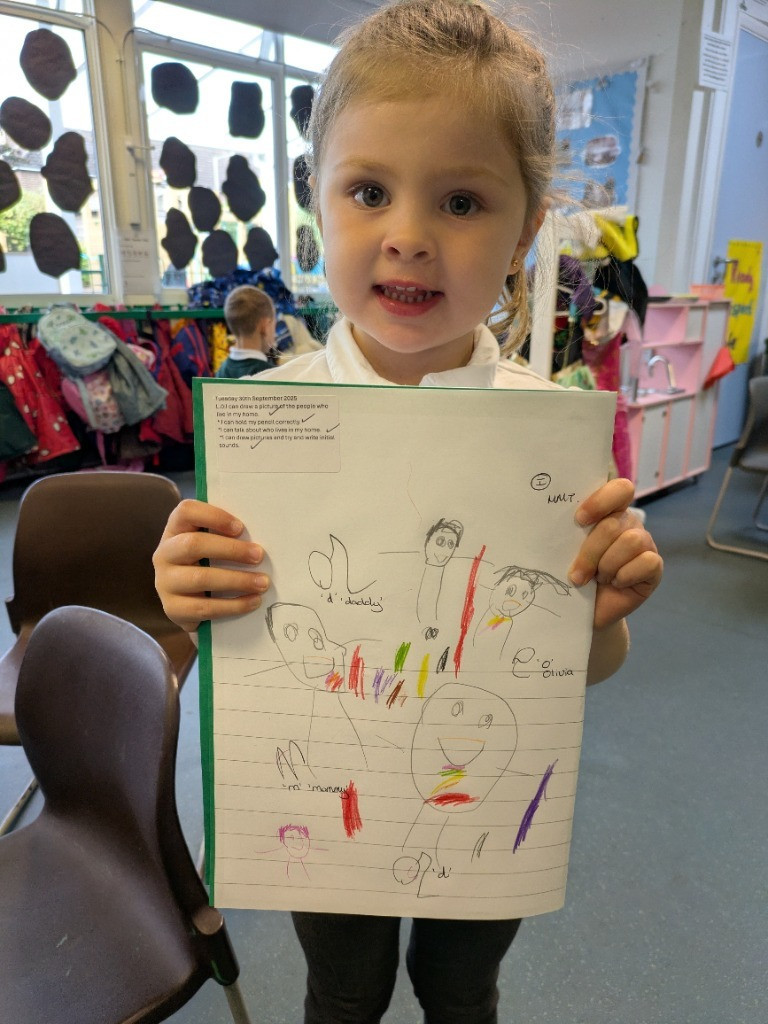 In Literacy, the children have really impressed us with their literacy skills by drawing pictures of their families and writing the initial sounds to represent their family members. The children have developed their fine motor skills to create homes and develop their pencil control.