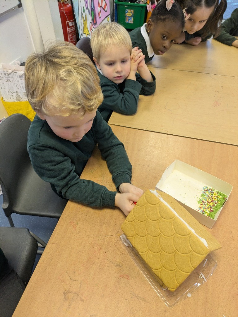 The Reception children have had a fantastic start to their learning this term, and we are so proud of them all. We challenged the children to work together to construct a gingerbread house using wooden blocks and real gingerbread. We then enjoyed eating them together as a class.