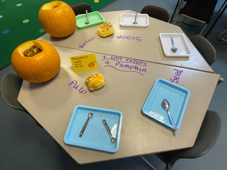Linked to Autumn, we have also created pumpkin pictures and used our senses to explore real pumpkins.