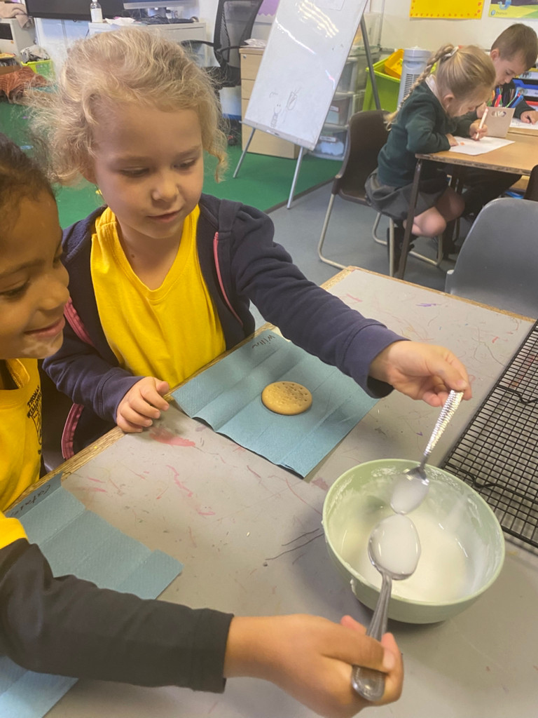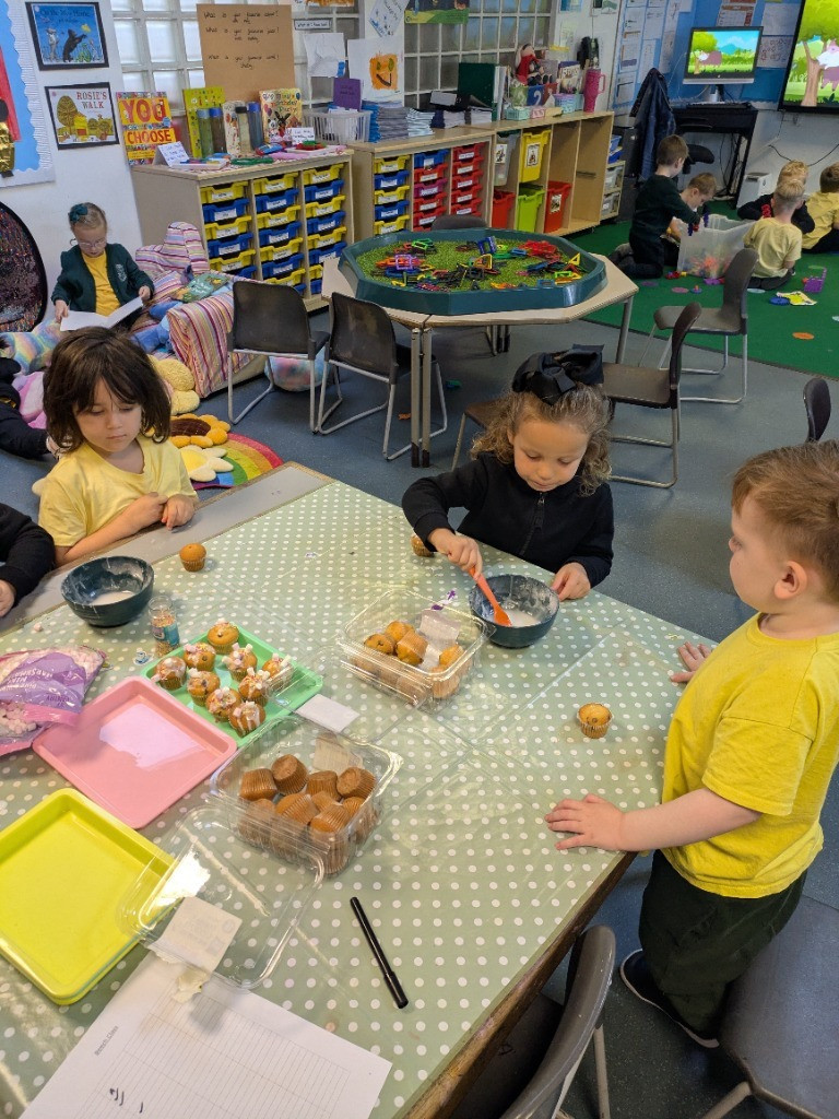 Our main theme this week has been birthdays. Classes read the story 'Kipper's birthday,' as well as several other birthday-linked stories. We have looked at our birthday walls and thought about how old we are now and how old we will be on our next birthday. Children have written about how old they are, as well as drawing and painting birthday cakes. On Thursday, they were even able to make icing and use sprinkles to design their own cake or biscuit, which obviously needed eating! Children have been inspired to follow this theme into many different areas of learning, and we have been amazed at their creativity, for example, producing amazing birthday cakes out of stickle bricks.