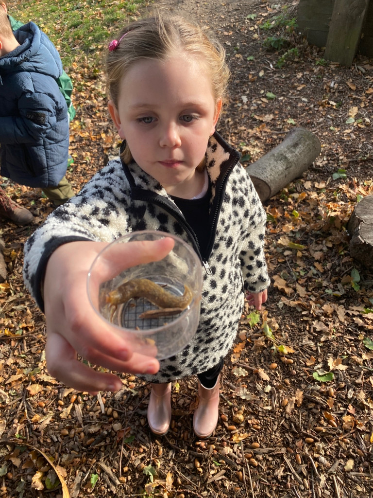 We were also lucky to have another Forest School this week. Classes started by discussing the visible signs of autumn, such as the leaves changing colour and falling off the trees. Next, the children teamed up with a partner to search for minibeasts in the forest school area, lifting up tree stumps and logs to discover them.