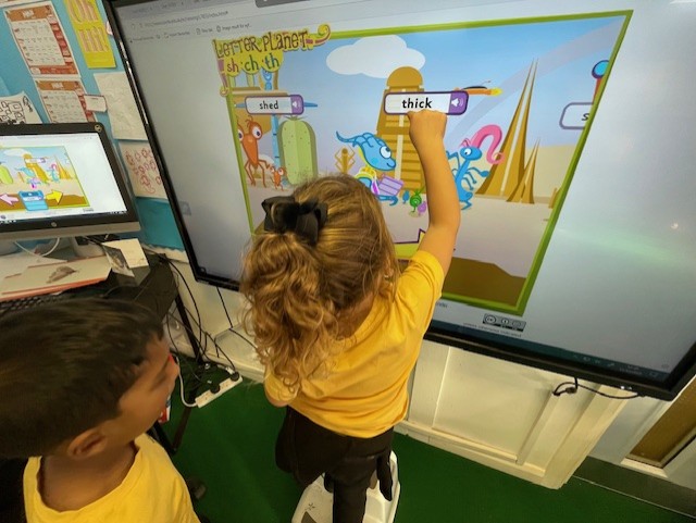 Wow! What brilliant writers and readers we are becoming this week. We have focused on the caption 'a big robot' using our understanding of phonics to build words as the children write. As a whole class, we focused on the letter sounds 'x, y, z and the digraph zz' During our whole class reading lessons, we explored the interactive story 'Ruby the Robot'. The children loved acting out the story, drawing a rainbow Robot and creating their own shiny Robots using coloured foil.
