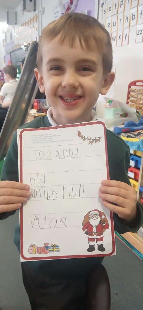 Writing this week has been a wonderful experience for everyone. The children have impressed us with their phonological knowledge to enable them to write beautiful letters to Santa. As classes, we have been reinforcing all our letter sounds so far and embedding our understanding of each tricky word. Next week we will focus on the digraphs sh, ch, th and ng