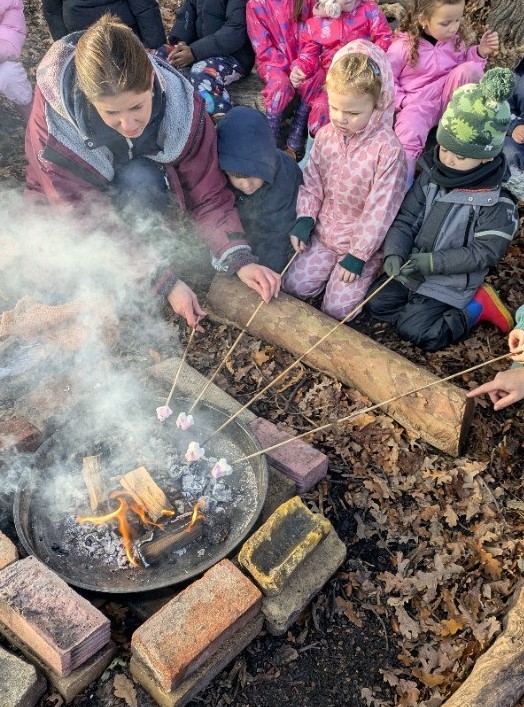 In our forest school session, the children loved exploring the grounds! They had a great time playing in all the wonderful areas created by the older children for OPAL play, such as the mud kitchen and the climbing zone.
