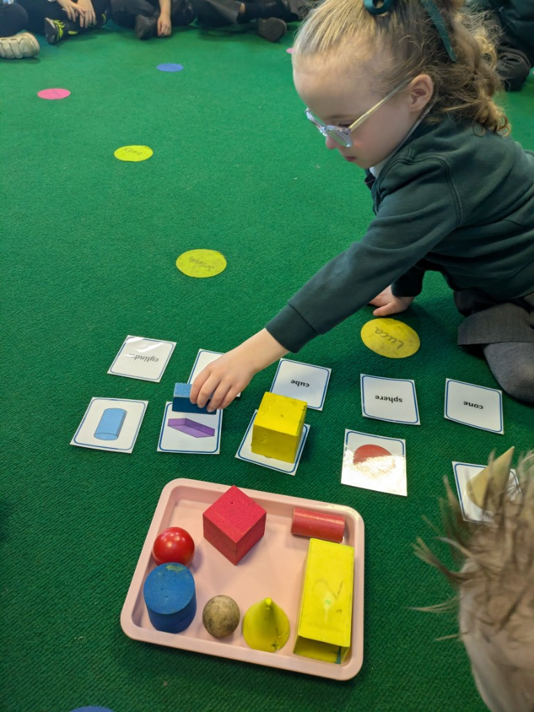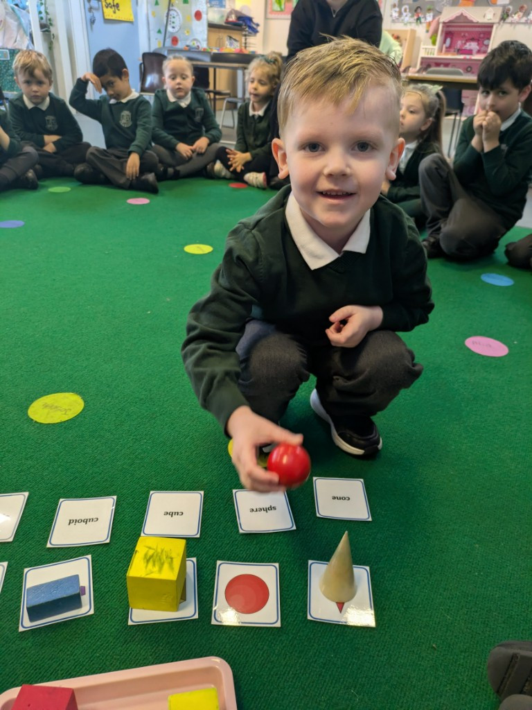 During our maths lessons this week we have explored sorting rockets from the tallest to the shortest, finding different ways to make 9 and 10 and 3D shapes. Learning new words including sphere, cube, cuboid, cone and cylinder.
