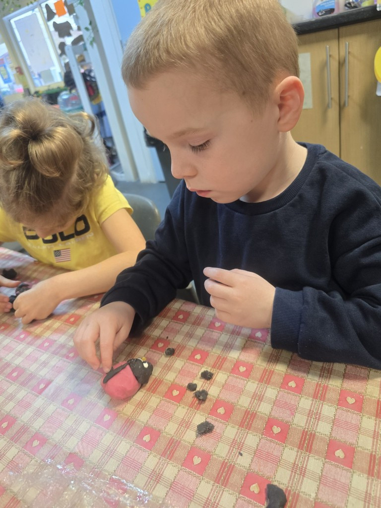 This week the children loved learning about mini-beasts using the story What the Ladybird Heard. Each child has written a simple riddle to describe a mini-beast, looked closely at a picture and written about what they could see. We spoke with confidence to read our riddles to our friends and have been practising writing different mini-beast words using our phonetical knowledge.  The children also used salt dough to create their own lady birds.