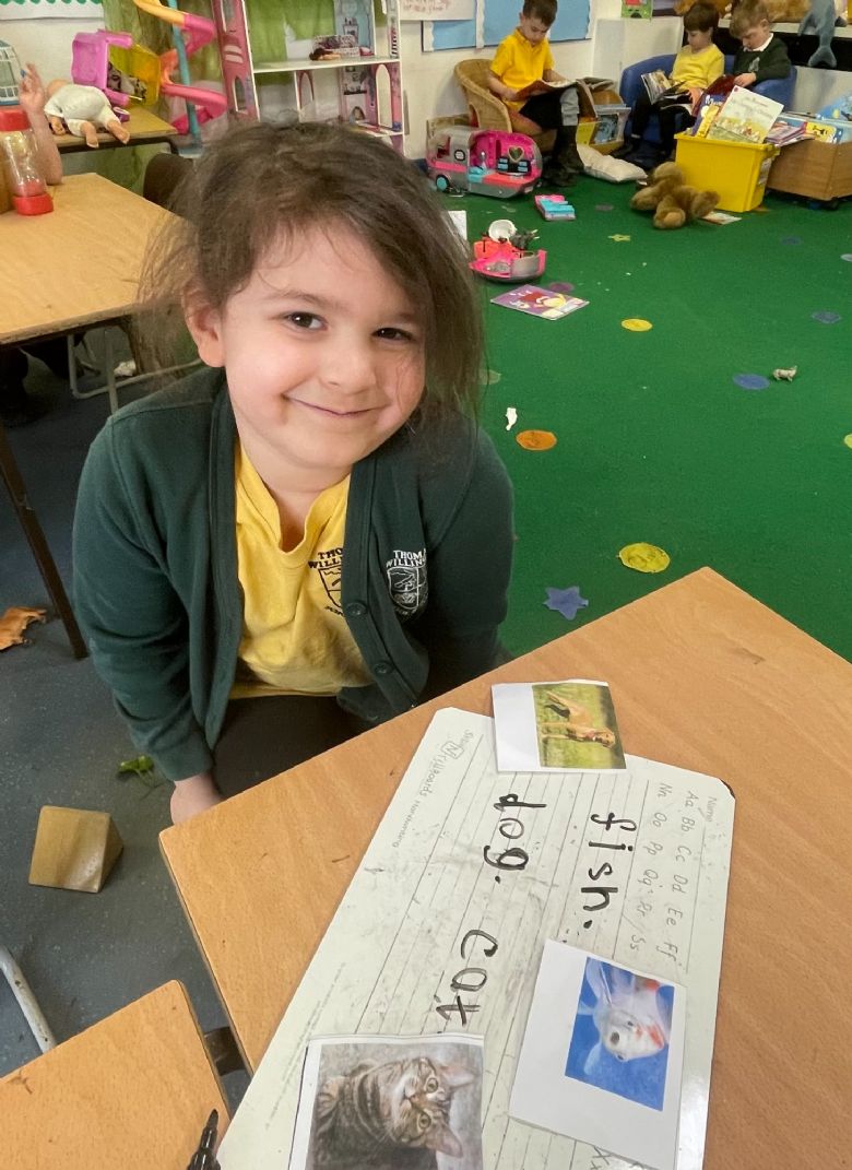 During our Literacy lessons this week, the children have been finding out and sharing information about wild animals. Completing animal fact file sentences to share with the aliens. The children are continuing to impress us with their phonics understanding by writing CVC words and simple words from memory.