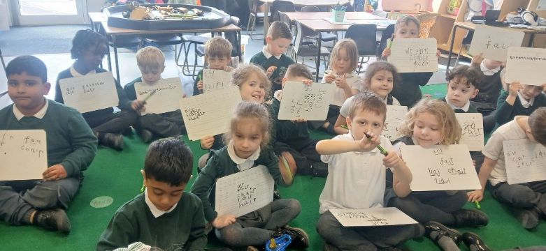 The reception children are really impressing us with their phonics understanding and daily handwriting lessons. This week we have continued with our curly caterpillar letters g, q, e and s and in phonics we have learnt the digraphs oi and ow.