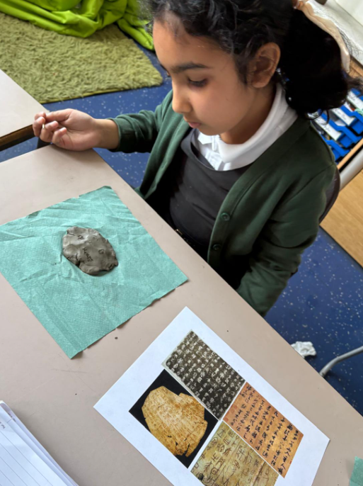 In History, we learnt how people communicated in the Shang Dynasty. We then used our knowledge to carve into some 'oracle bones' (clay) using some symbols from the Shang Dynasty era.