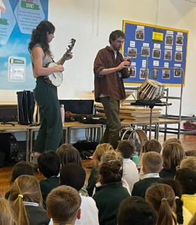 On Wednesday, we had a music performance by Mishra. They taught us about lots of different instuments and where they are from.