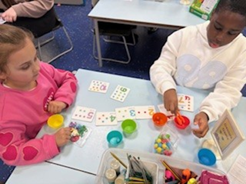 In maths we have moved onto multiplication. The children now understand the meaning of equal groups and the children are able to identify equal groups. The children then used cubes to make equal groups using mathematical language like groups of and lots of.β―